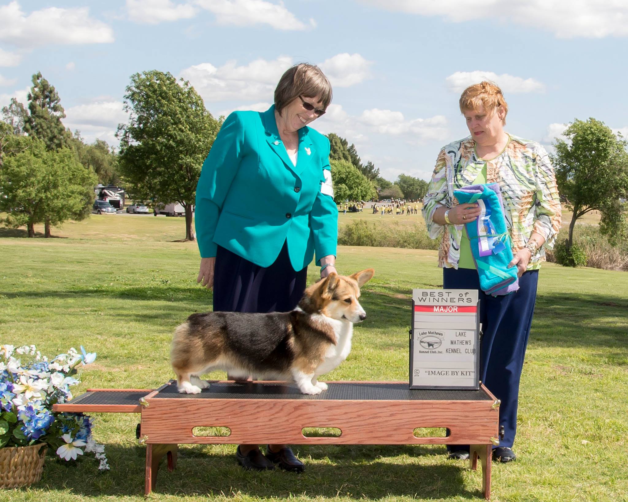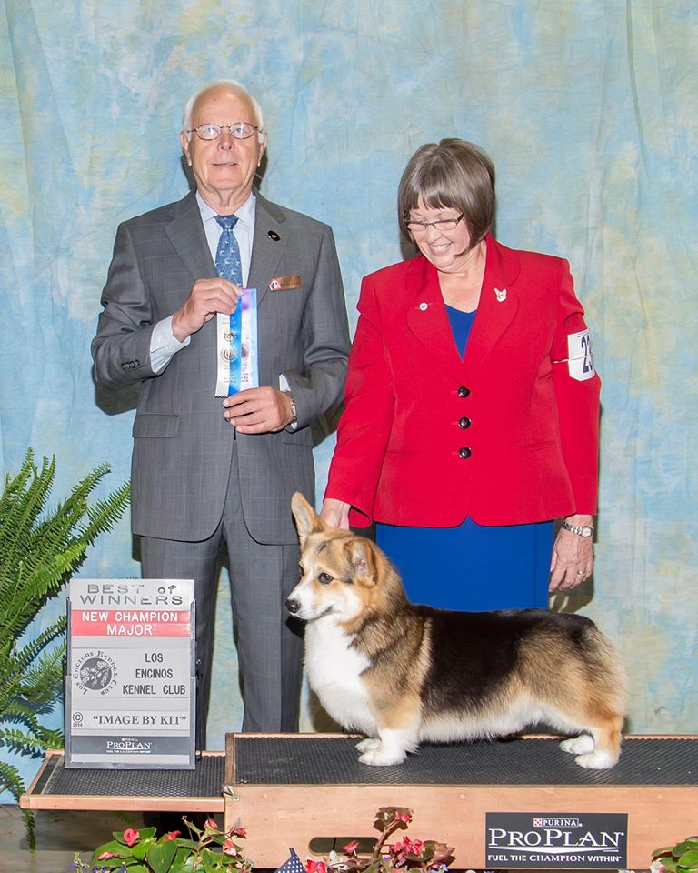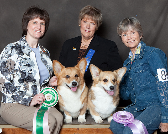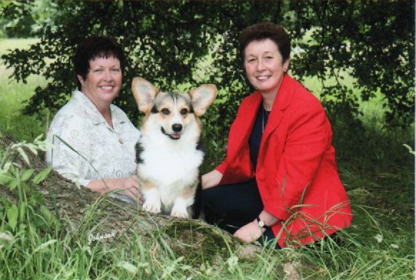 Бабушка Бенджи - ROSEWOOD BREEZE N BY с её заводчиком и владельцем Liisa Coit (питомник ROSEWOOD) справа